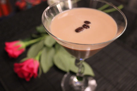 Misture tudo no mixer e sirva numa taça de martini, não esqueça de decorar com os grãos de café para dar um charme maior a bebida.